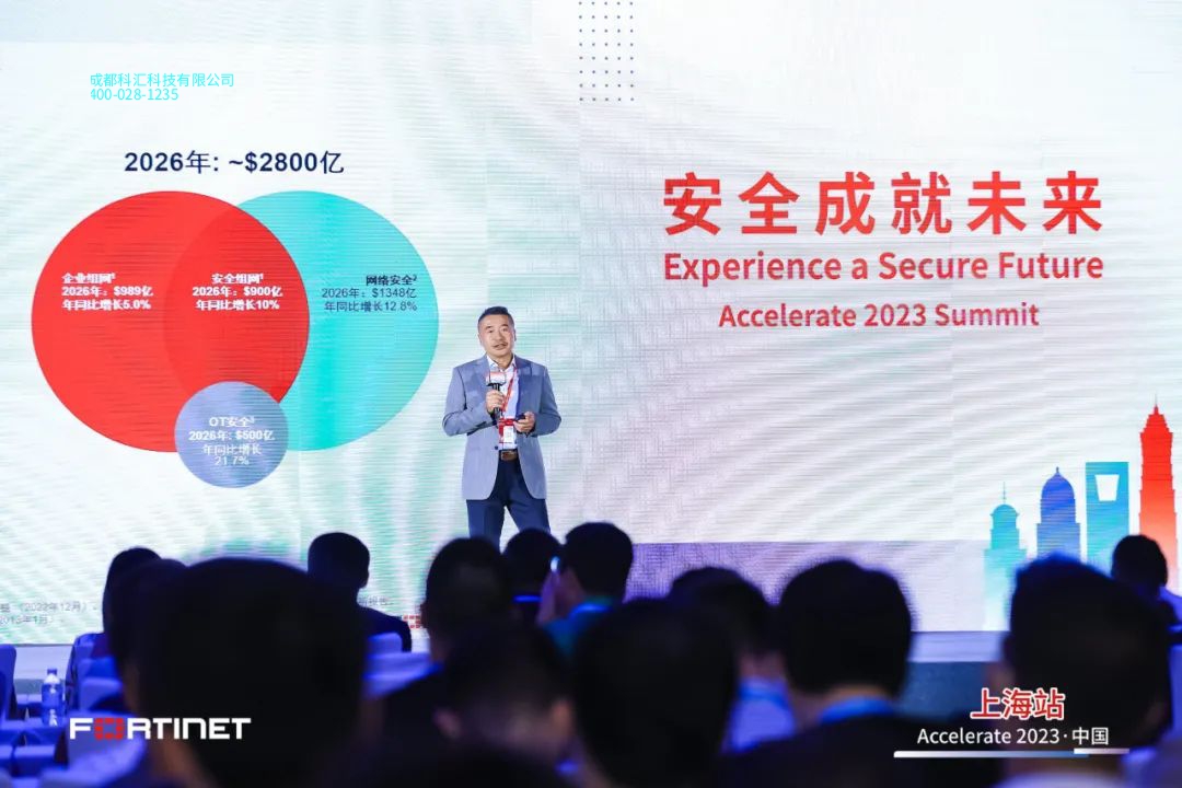 在致辞中,Fortinet北亚区总经理陈鸿翔(Spencer Chen)指出,网络和安全融合已经成为趋势,预计安全组网市场2026年可以达到2800亿。与此同时,企业攻击平面在物联网、混合办公模式等快速发展中,变得愈加广泛。整合多种防御手段应对各种威胁攻击是企业解困的关键。