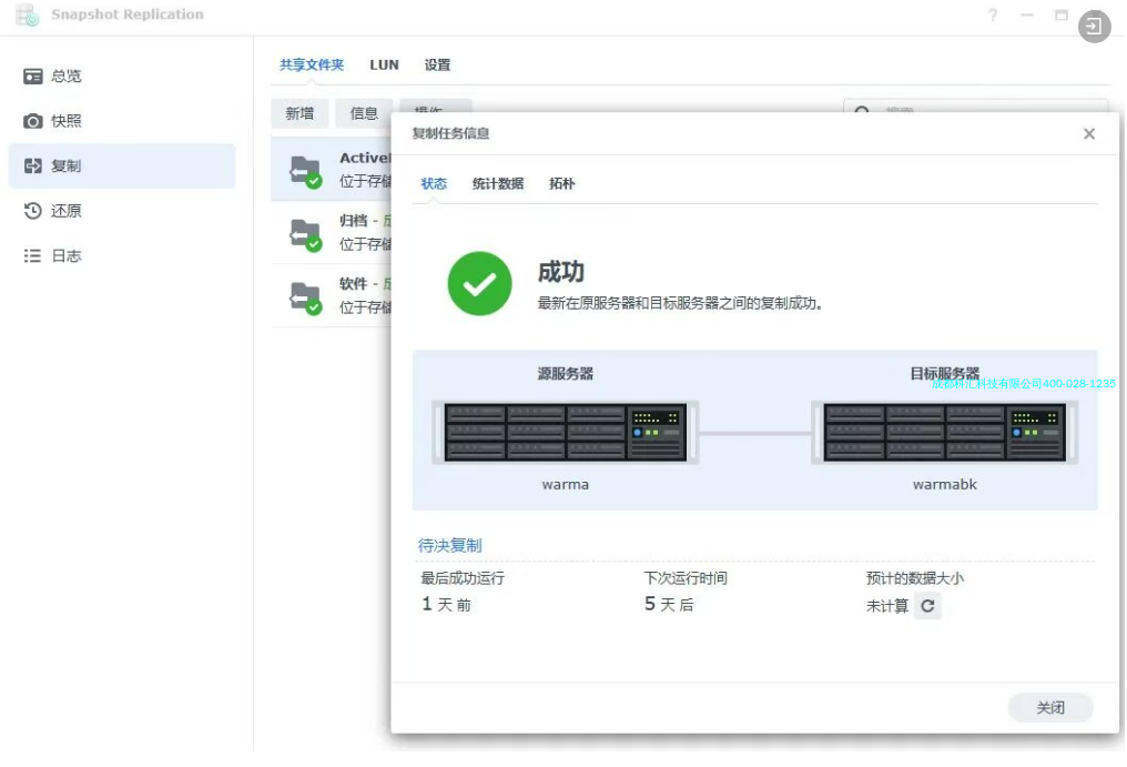 备份支持:支持备份/还原:集中备份企业服务器、虚拟机和云端数据,支持VMware虚拟机/,虚拟机/PC/服务器,并在业务系统宕机无法启动时,可以通过群晖自带的虚拟机还原业务系统,并启动虚拟机顶替业务,起到灾备作用;