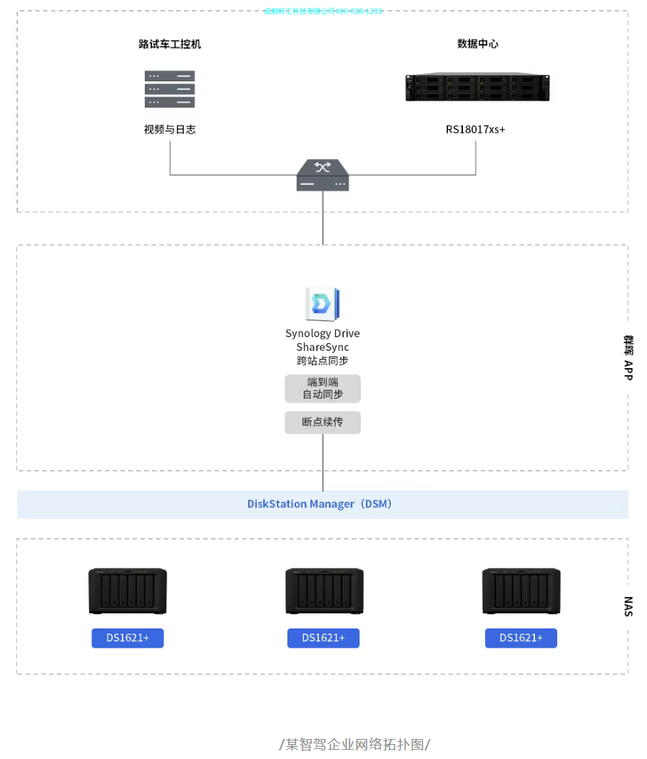 汽车行业:头部智驾企业采用群晖 NAS 构建车载数据采集系统,解决频繁回传瓶颈,效率提升 4 倍某智驾科技头部企业,提供市场**的乘用车**辅助驾驶和高阶智能驾驶解决方案,拥有全球**的软硬全栈研发,每三台中国智驾车就有一台搭载该企业的技术,然而路测数据的 “随车存储与高效回传”,却曾是制约其研发效率的关键瓶颈。数据采集车所记录的视频、日志等数据,原先存储在工控机本地。由于存储容量有限,只能存储 1 小时视频数据。造成车辆需频繁回到基地回传数据,效率低、增加运营成本。为解决这一问题,该智驾企业采购 200 台群晖 DS1621+ 作为随车数据采集存储节点,群晖支持 NFS v3/v4/v4.1 协议,再配置 6 块 SSD 组成全闪存阵列,RAID 6 阵列提供硬件容错,高速写入保障多路测试视频与日志稳定写入不卡顿。先前仅能保存 1 小时测试视频,部署后测试数据可用写入时长提升 400%。每台 DS1621+ 完成路试回厂后,通过群晖 Drive ShareSync 套件自动回传随车采集数据,汇总至数据中心的群晖 RS18017xs+,实现集中管理。