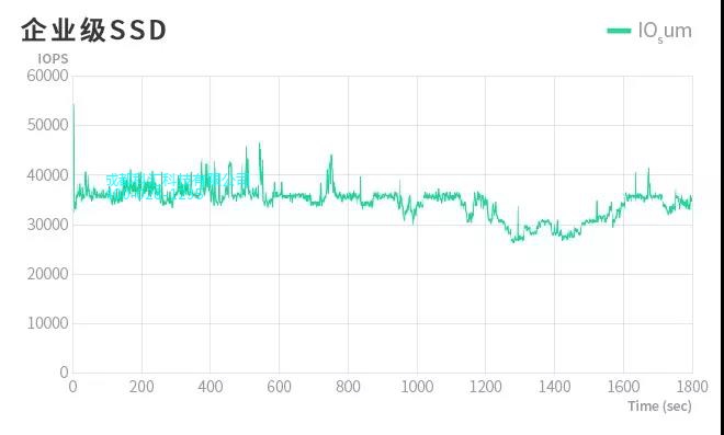 反观企业级 SSD ,和家用级形成了鲜明对比,企业级 SSD 可以提供更稳定的 IOPS 。数据保持相对平稳,性能并没有出现大幅度的提升和下降,因此使用体验更好,发挥更稳定。