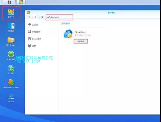 打开套件中心搜索cloudsync,点击安装套件。