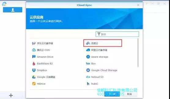 打开软件之后就是这个界面,这里我们以百度云同步为例,像群晖支持的还有阿里云,腾讯云,亚马逊云等等。