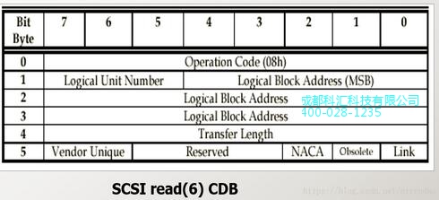 SCSI的命令以及参数是填充在一定长度的数据块内传输的。这个数据块就是命令描述块,即CDB.