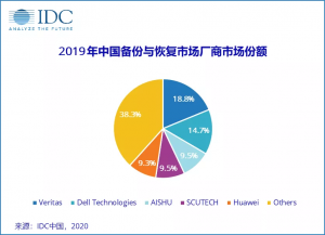 从全球范围来看,备份一体机市场在2019年达到41亿美元的销售额,同比增长4.3%,戴尔已经占有备份一体机市场近一半的份额,Veritas 以近20%的市场份额紧随其后。