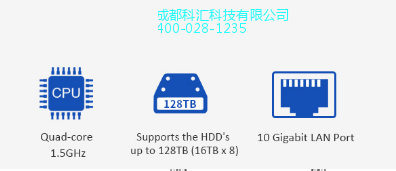 采用Intel 四核1.5 GHz(**睿频至2.3GHz) 处理器, 8GB DDR3内存, 1个10Gb万兆网口与2个1Gb千兆网口, 支持AES NI 硬件加密,是中小型商业存储服务器的理想之选。