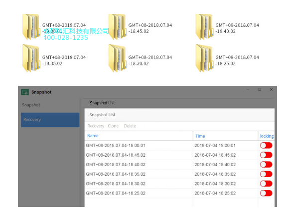 Snapshot为每个共享文件夹创建512个快照和整个系统高达8192个快照,为您提供可调的、节省存储容量的数据保护能力。