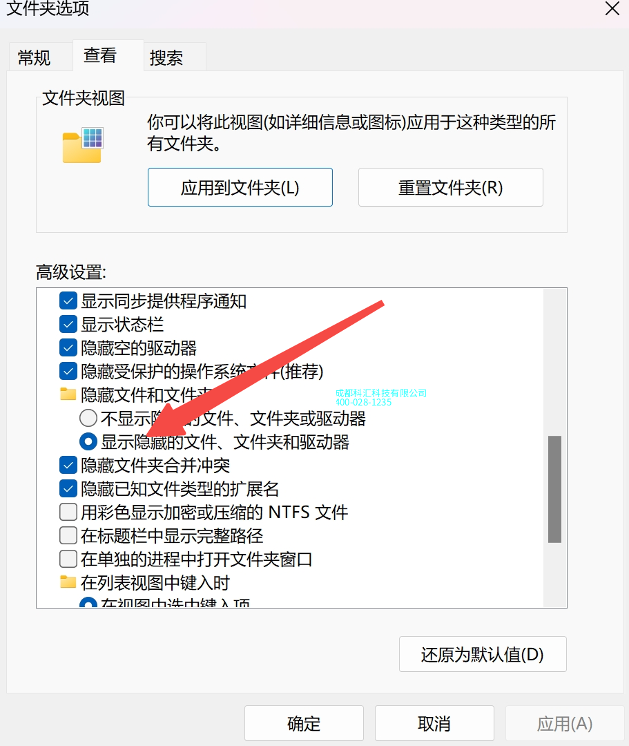 然后发现文件都在,只是蠕虫病毒感染文件时会把原文件隐藏起来,让文件夹里只显示它一个,方便诱骗人员点击。在文件夹页面点击选项,选择显示隐藏的文件夹后即可解决