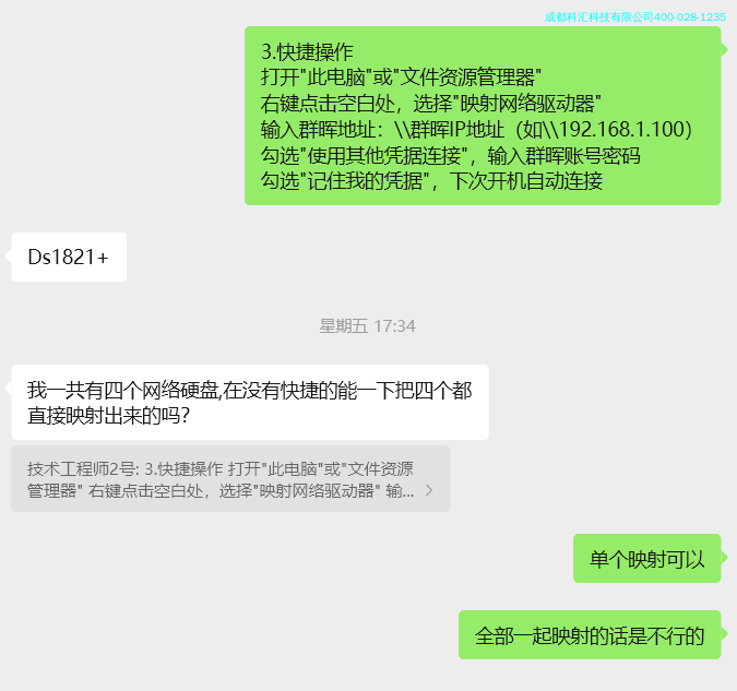 针对用户“能否一次映射四个”的疑问,技术支持明确答复:“单个映射可以,全部一起映射不行”,但通过为每个网络硬盘创建独立的映射驱动器,用户*终实现了四个网络硬盘的一键式访问,大大提升了工作效率。
