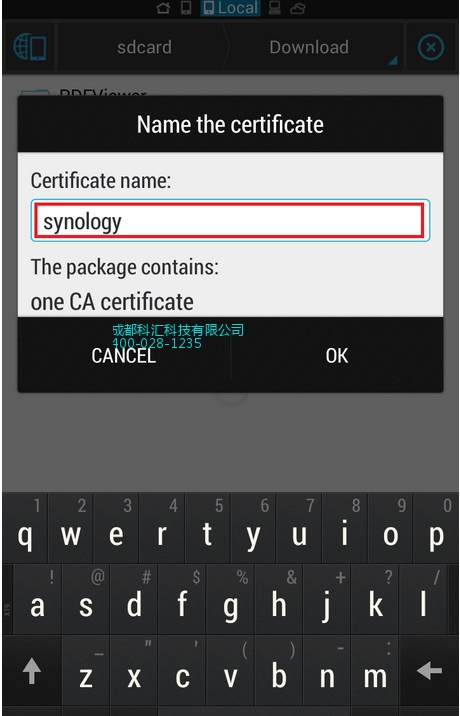 为防止网络攻击或信息漏洞,我们建议您在使用移动设备访问 Synology NAS 上的文件时将自我签署证书导入到移动设备。开始前,您应已创建了来自 Synology NAS 的证书文件。若要了解如何创建创建证书,请参见此文