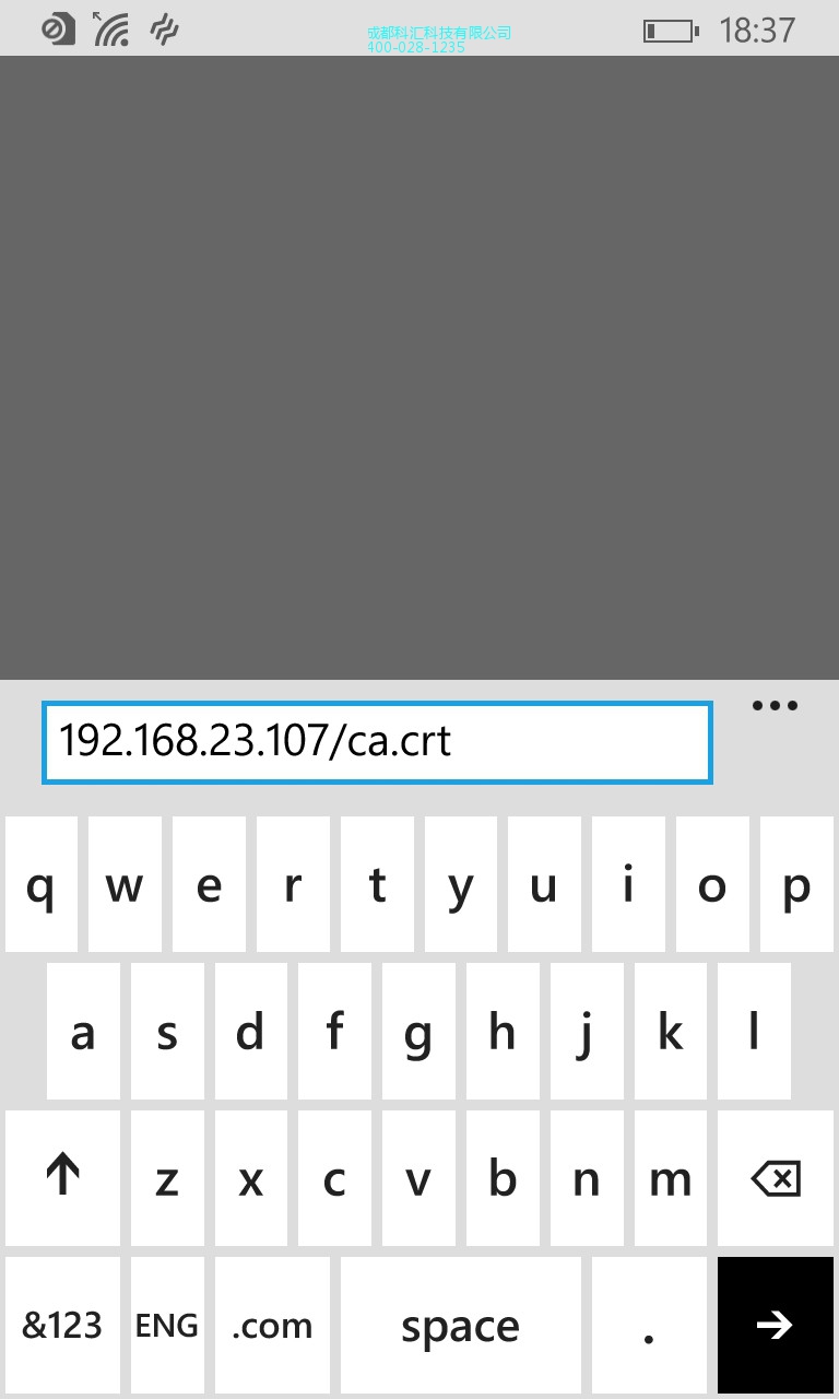 一般而言,用电子邮件发送 .crt 文件并在 Windows Phone 上打开可能不会让您导入证书。我们建议您通过 Internet Explorer 将 .crt 文件导入到 Windows Phone。请按照下列步骤来操作: