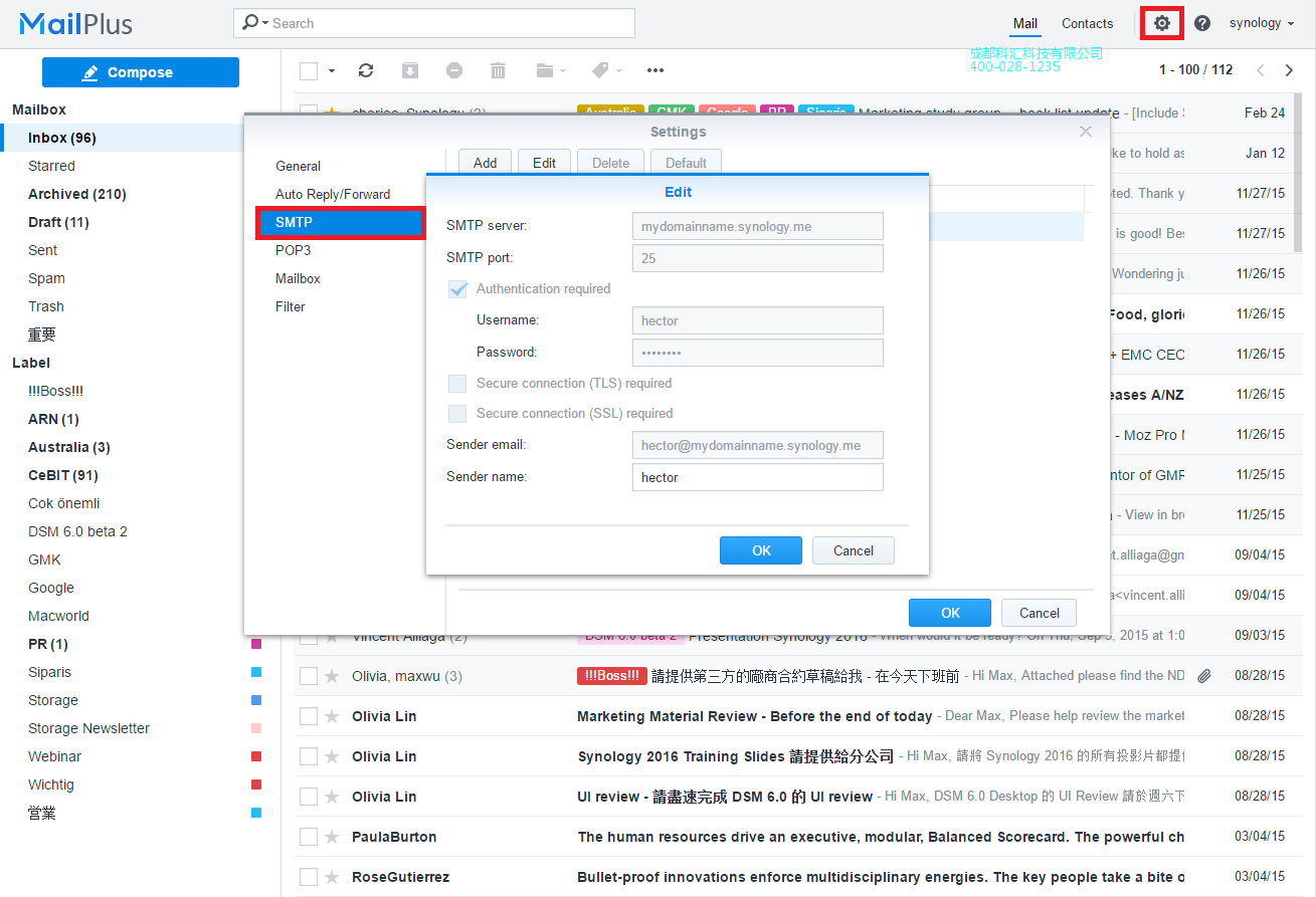 5. 通过其它电子邮件客户端访问 Synology NAS 上的电子邮件