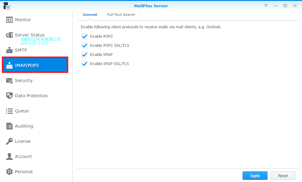 1. 启动 MailPlus Server 并进入 IMAP/POP3 页面来启用 IMAP 或 POP3(视客户端而定)。
