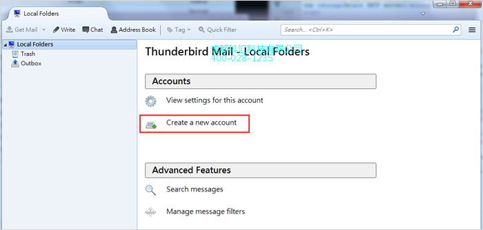 2. 在计算机上启动 Thunderbird 并单击创建新帐户。