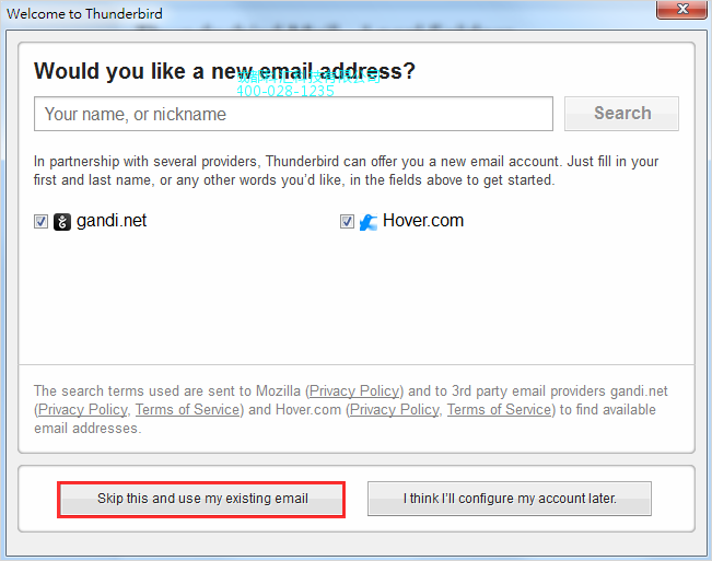 3. 单击跳过这一步,使用我现有的电子邮件。