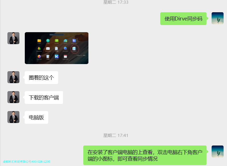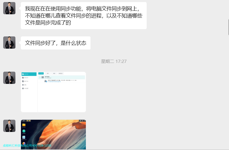 服务场景化:针对企业用户的实际办公需求,不仅解决当下的同步问题,还会主动提示 “后续问题可随时咨询”,提供长期的技术保障。