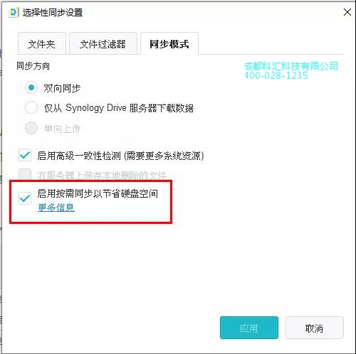 *设定同步任务时,需勾选【启用按需同步以节省硬盘空间】