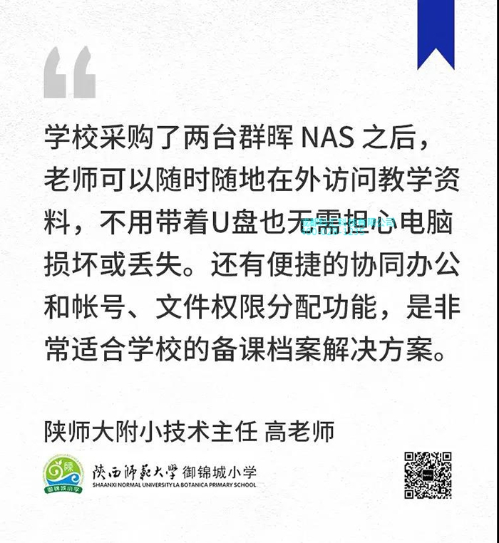 陕西师范大学御锦城小学有 1800 名学生在这里同时学习生活,传统的 U 盘拷贝教学课件以及人为失误覆盖文件历史版本,这些都降低教师课件共享和管理效率。