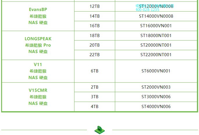 酷狼:ST2000VN004 ST3000VN007 ST4000VN008 ST4000VN006 (新型号) ST6000VN001 ST8000VN004 ST1 0000VN000 (新型号) ST10000VN0008 ST12000VN0008 ST1 6000VN001