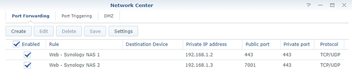 专用端口可以是同一个端口(例如,用于 Web Station 的端口 443),但请注意不要将同一个端口分配给两个 Synology NAS。