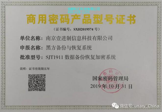 国家认可 实力证明丨航天壹进制黑方备份与恢复系统获颁《商用密码产品型号证书》