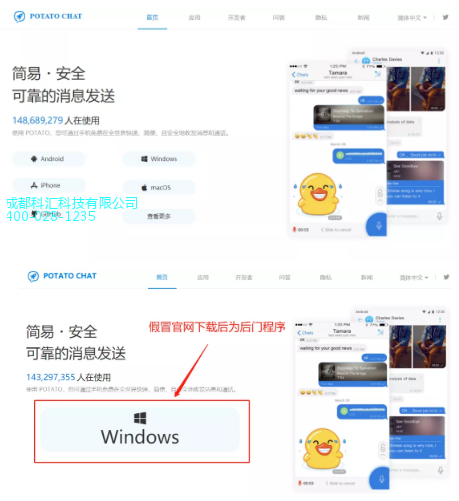 近日,火绒工程师发现一个仿冒potato chat软件(一款通讯工具)的官网正在传播灰鸽子远控软件,不排除灰鸽子遭恶意利用投放,诱导欺骗用户安装,达到控制用户电脑的目的。为避免更多用户遭遇安全风险,火绒紧急对该版本(6.8.0.0)灰鸽子软件进行拦截查杀,报毒类型为后门程序。