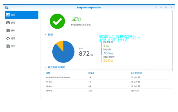 而避免因网络勒索病毒或硬件意外故障,通过群晖Snapshot Replication快照与复制功能,可以为共享文件夹和iSCSI LUN及时拍摄快照,快照*短频率为5分钟,当发生意外事件时,可以选择**的快照来快速恢复虚拟机上的业务运行。而通过将快照复制到本地或异地服务器,还能实现本地/异地备援,以尽可能地降低服务停机风险并保护企业的数字资产。