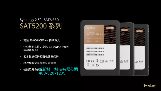 与FS3600同步推出的还有群晖企业级高性能SATA SSD SAT5200,SAT5200是专为群晖服务器而构建的,与群晖服务器的兼容性经过严格的测试。