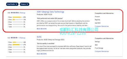 从用户区域与行业细分的角度看,XSKY则成为亚太区金融行业用户评论*多且综合评分*高的供应商。