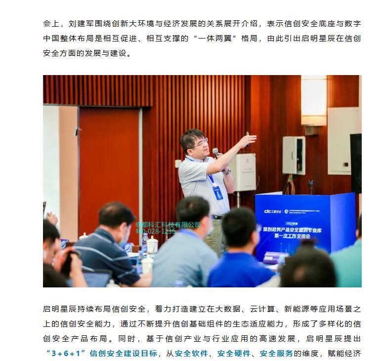 近日,“2023年度信创政务产品安全漏洞专业库**次工作交流会”在京成功召开,启明星辰信创专家刘建军应邀参会并发表《承数字中国整体布局之势 建信创安全体系创新格局》主题演讲。