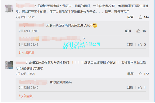 经过测试发现,以助教身份打开该软件后,在没有**提示的情况下可以直接开启学生端摄像头,而在打开麦克风时虽然出现提示,但是没有询问拒绝选项。此外,该软件还可检测学生在视频上课时是否切换到其它软件界面,以此判断学生是否在“认真听课”。
