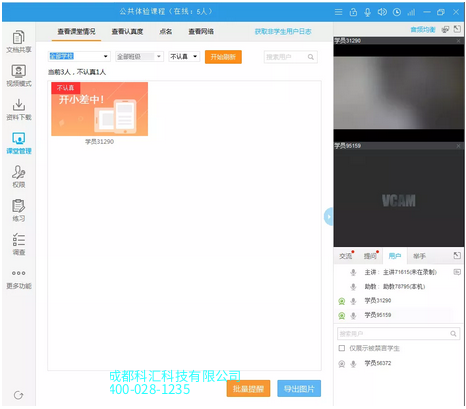图示:右侧助教端打开左侧学生端摄像头时,左侧没有**提示