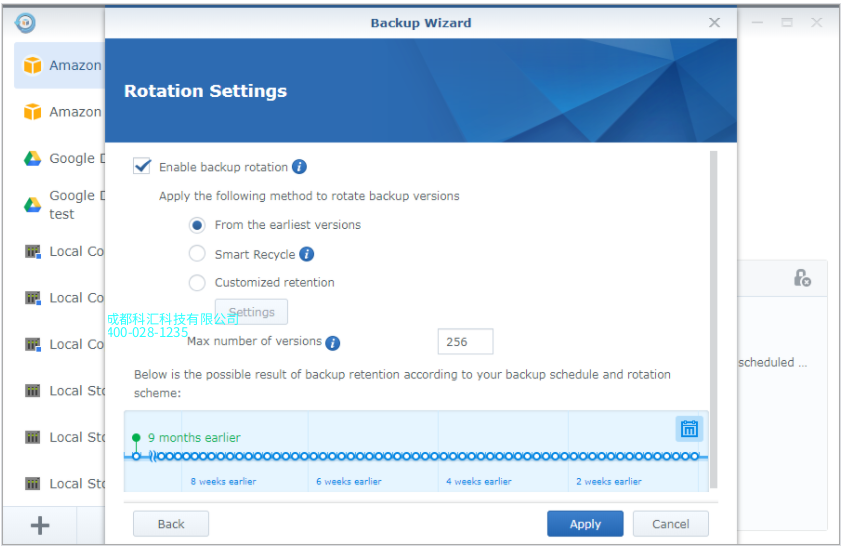选择启用备份轮换以设置轮换方案:
