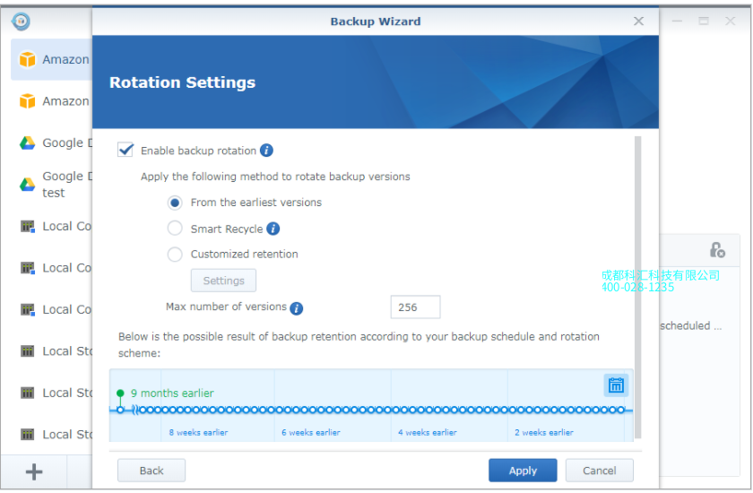 选择启用备份轮换以设置轮换方案: