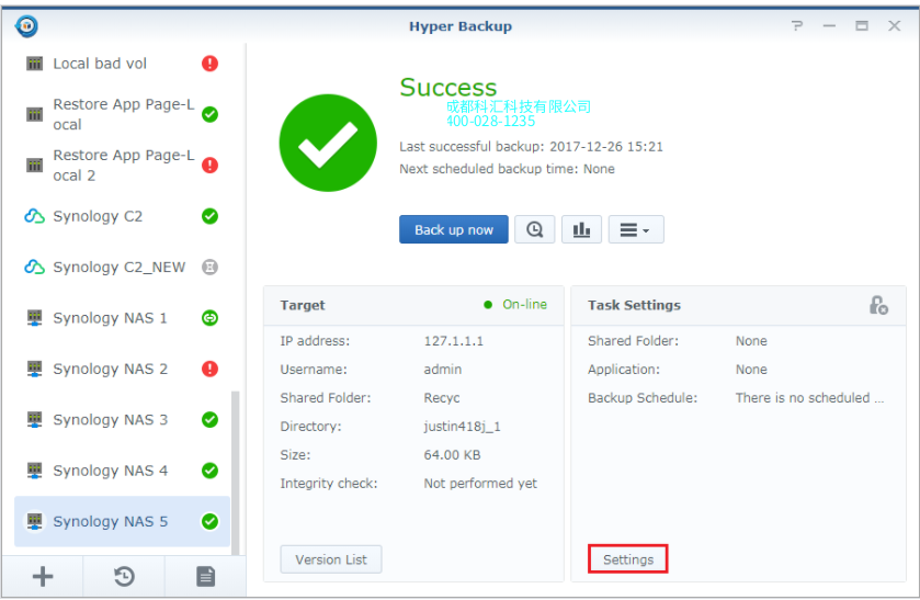若要了解有关使用Hyper Backup进行数据还原的更多信息,请参阅此帮助文章。