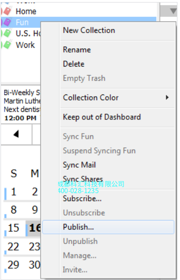 以鼠标右键点按日历,并选择发布。