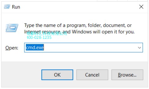 2.输入“ cmd.exe”并单击确定。