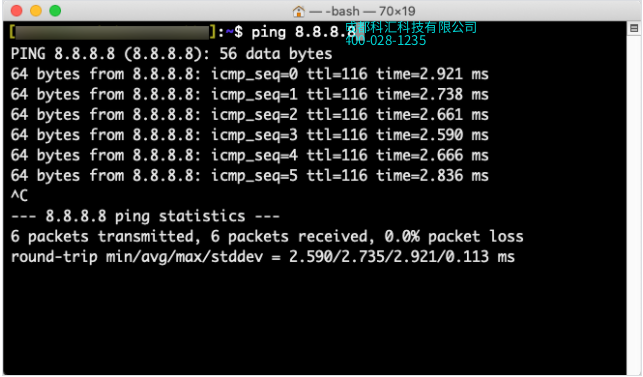 成功的PING会返回来自目标的消息。 Windows PING检测返回4个数据包,而macOS检测返回无限制的数据包。