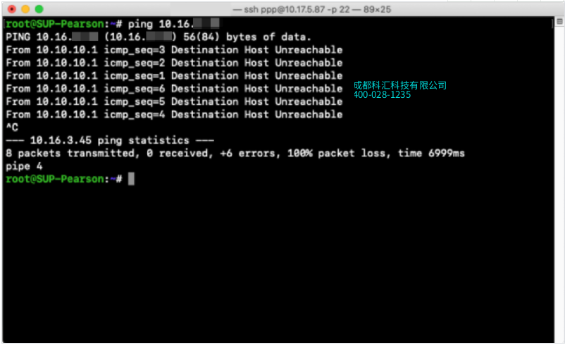 目的地主机无法访问:路由中的目标或其他设备拒绝了ICMP数据包。