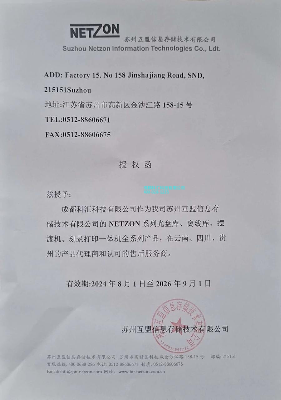 NETZON(苏州互盟信息存储技术有限公司)位于苏州市高新区科技城环保产业园,是NETZON磁光混合存储系列产品(光盘库、离线库)的生产商,是全球光盘库核心供应商。NETZON拥有专业级的光盘存储、光盘复制、盘面打印、特种证照打印等一系列存储、打印解决方案,提供IP-SAN﹑NAS等全线产品和应用软件。