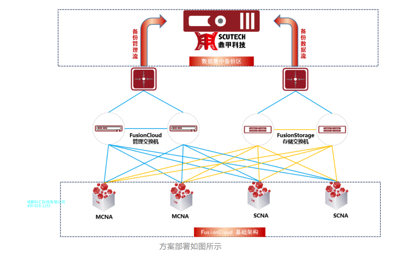 2、兼容华为 FusionStorage 分布式存储架构,备份数据实现 Lan-Free 传输,不仅加快备份速度,且不占用业务流量。