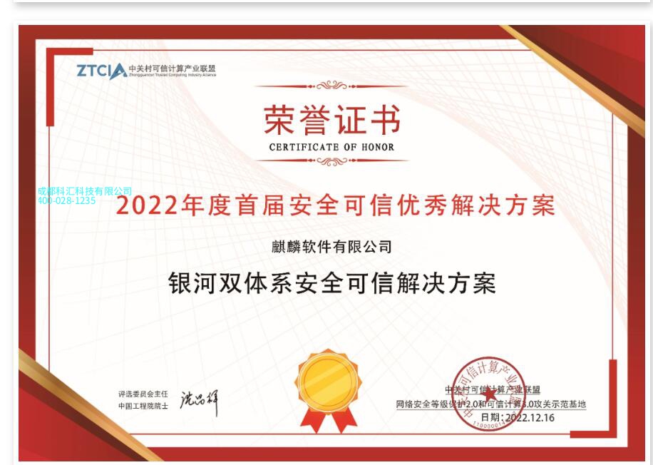 其中,麒麟软件有限公司被评选为“2022年度安全可信突出贡献企业”,麒麟软件有限公司党委书记、董事长谌志华被评选为“2022年度首届安全可信创业领军人物”,麒麟软件银河双体系安全可信解决方案被评选为“2022年度首届安全可信解决方案”。