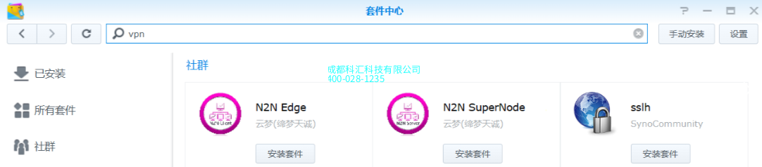 我们去套件中心下载vpn server套件发现没有这个套件
